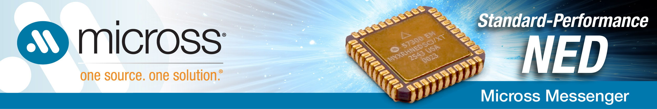 February 2026 | New Standard-Performance Nuclear Event Detector (NED) Micross expands offering of Nuclear Event Detectors (NED) with the Standard-Performance NED! The Standard-Performance NED offers 2X greater radiation dose sensitivity and 50%+ reduced response times at 10X lower overdrive levels compared to legacy NED devices. This includes integrated differential line drivers, which provide improved overall noise immunity and SWaP savings. We also invite you to view our latest webinar, "Optimizing DC-DC Power Supply for Space & Defense... Balancing Needs, Performance & Budget," where we explore emeging alternatives in hi-rel power supply. Join us for an opportunity to engage with our product experts and executives in person to discuss your high-reliability requirements at one of the upcoming conferences where we'll be exhibiting!