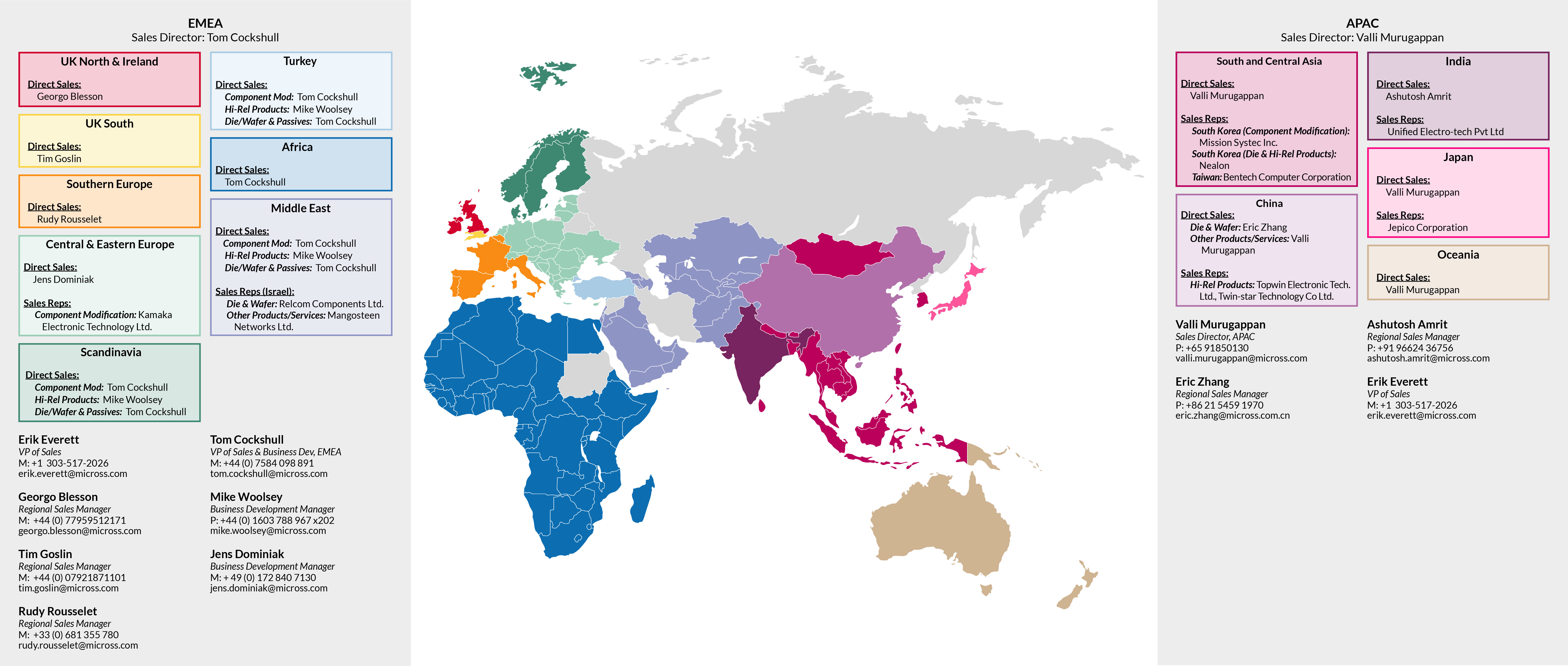 As the largest global supplier of bare die with access to thousands of different part types, Micross offers unparalleled knowledge & extensive capabilities as well as the flexibility to adapt our suppliers’ standard products to the unique requirements of your device or system.